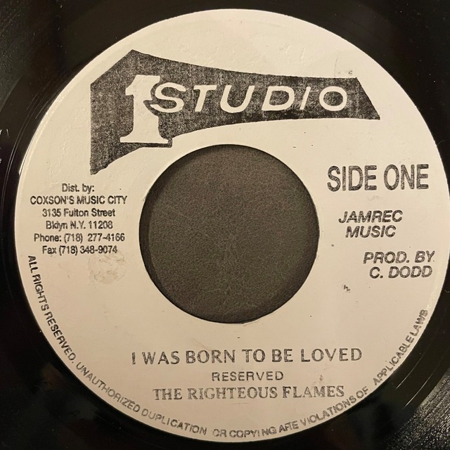 Nice Rocksteady!! 実力派コーラスグループRighteous Flamesによるスタワン名曲 ファットなベースラインの上で美しいコーラスワークが奏でるハーモニーが最高 A side : Righteous Flames - I Was Born To Be Loved (Condition:B ) B side : Version (Condition:B ) Format:7Inch Label:Studio One Year:1968